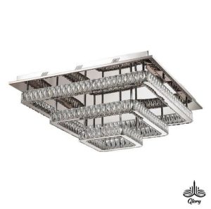 لوستر مدرن سقفی کریستالی مدل مربع 3 طبقه SMD؛ ترکیبی از ظرافت، درخشش و کارایی